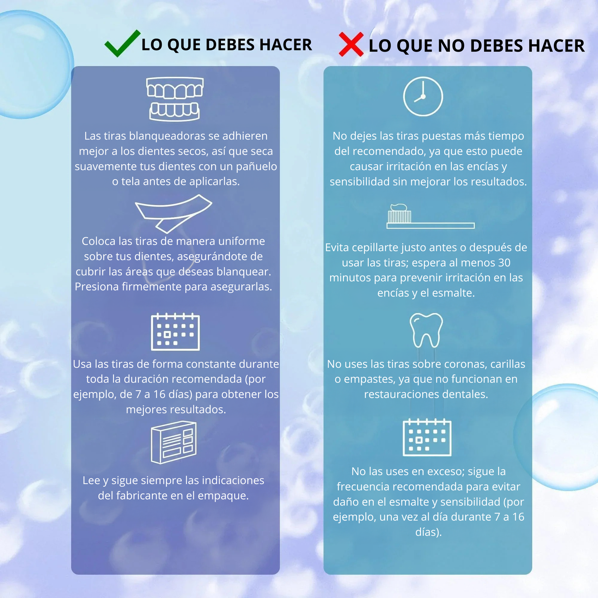 Sí, pero las tiras solo blanquean el esmalte natural. No alterarán el color de coronas, carillas o empastes existentes.